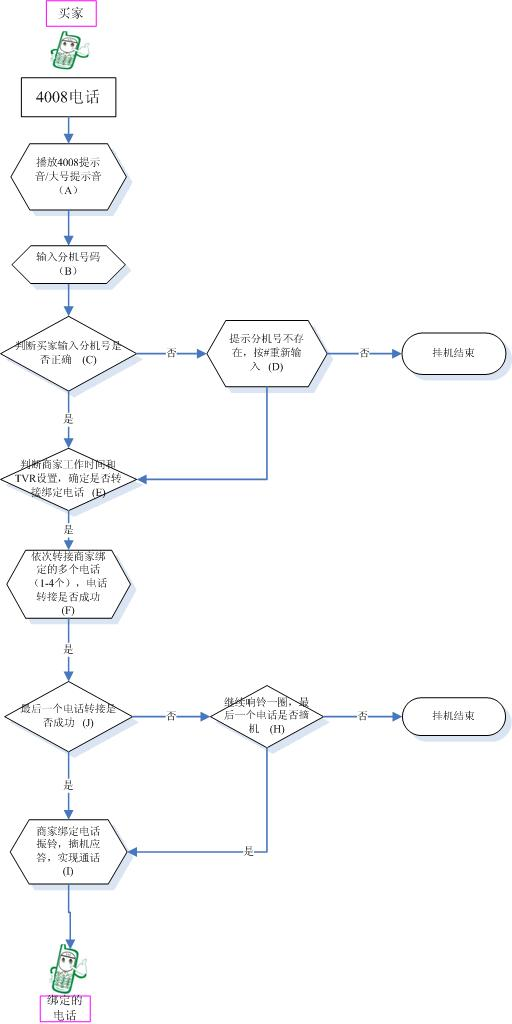 5. C到F这段时间的长度和无小号提示音有关, 无提示音的拨完小号到响铃8至10秒;有小号提示音的,需要加小号提示音的时长。
