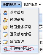 2. 媒体配置完成后,进入“商户”登陆平台,在“我的资料”中点击“生成呼叫代码”如下图: