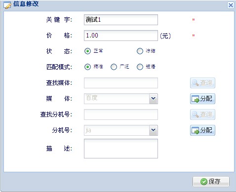关键字设置—根据企业在媒体推广中设置的关键字进行系统设置