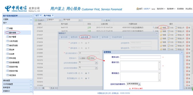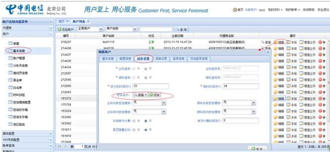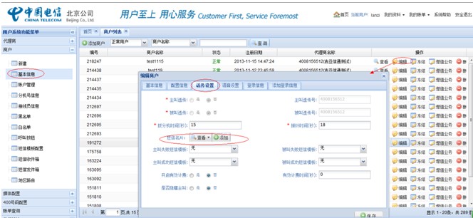 设置流程1:代理商后台——商户——编辑——话务设置——添加