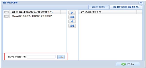 可选接线员中,只显示前10个接线员(避免数据过多影响查询速度),未显示的接线员可以通过接线员号码进行查询,再添加;