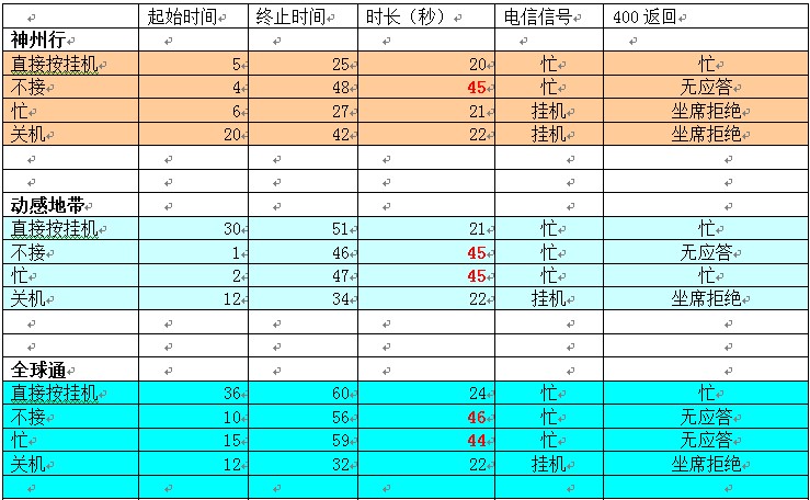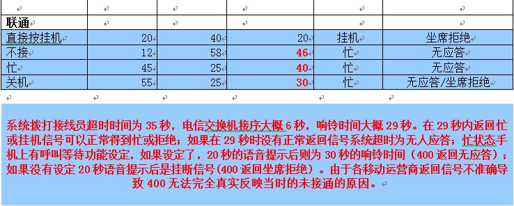 400平台手机信号说明表(固话正常)